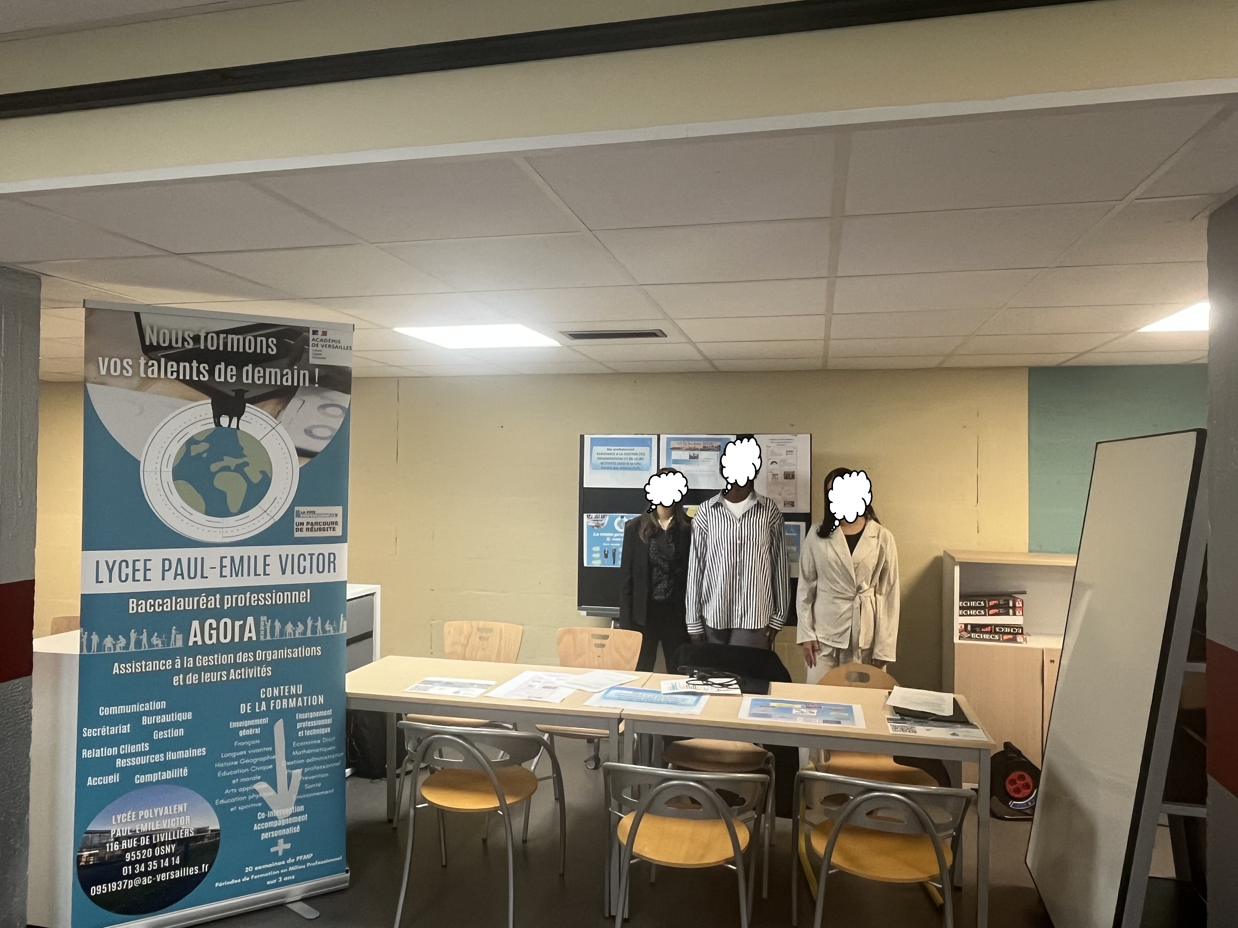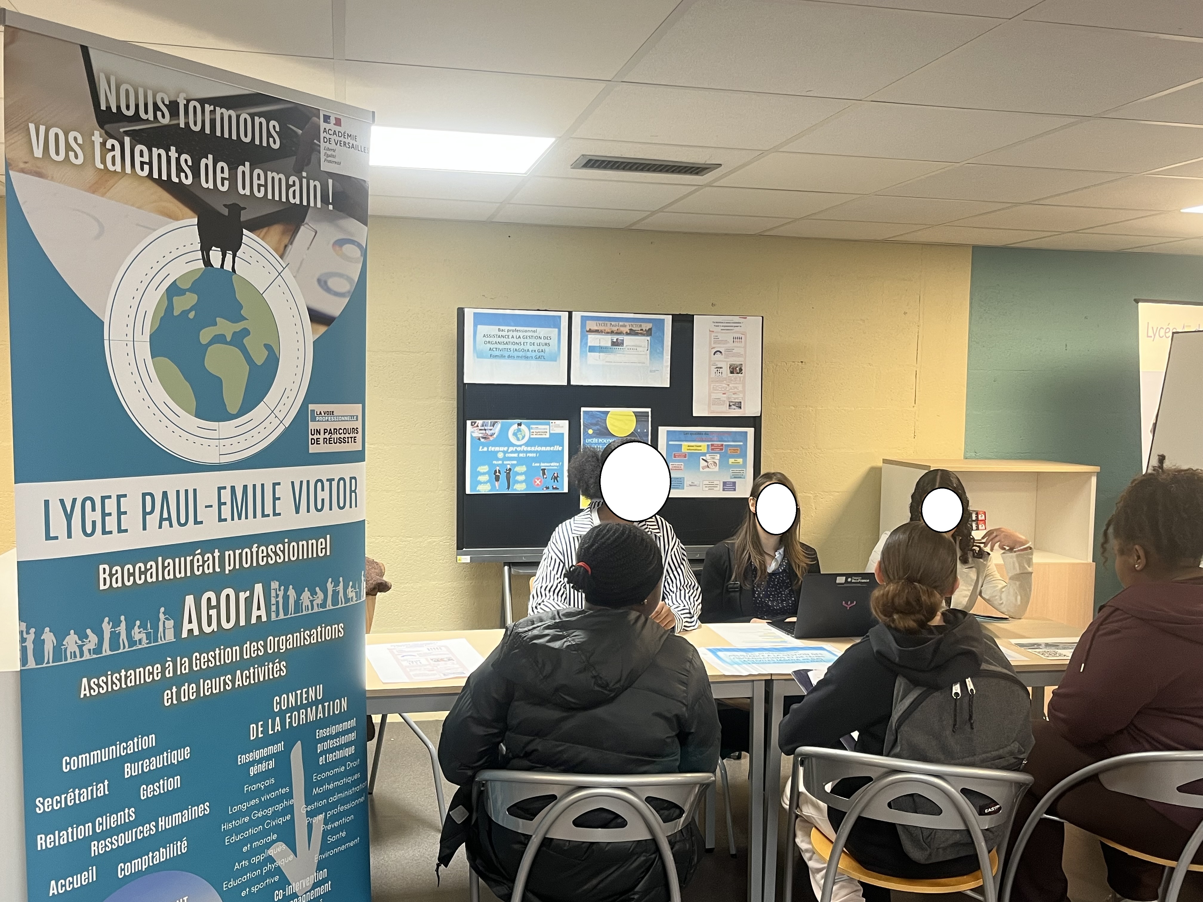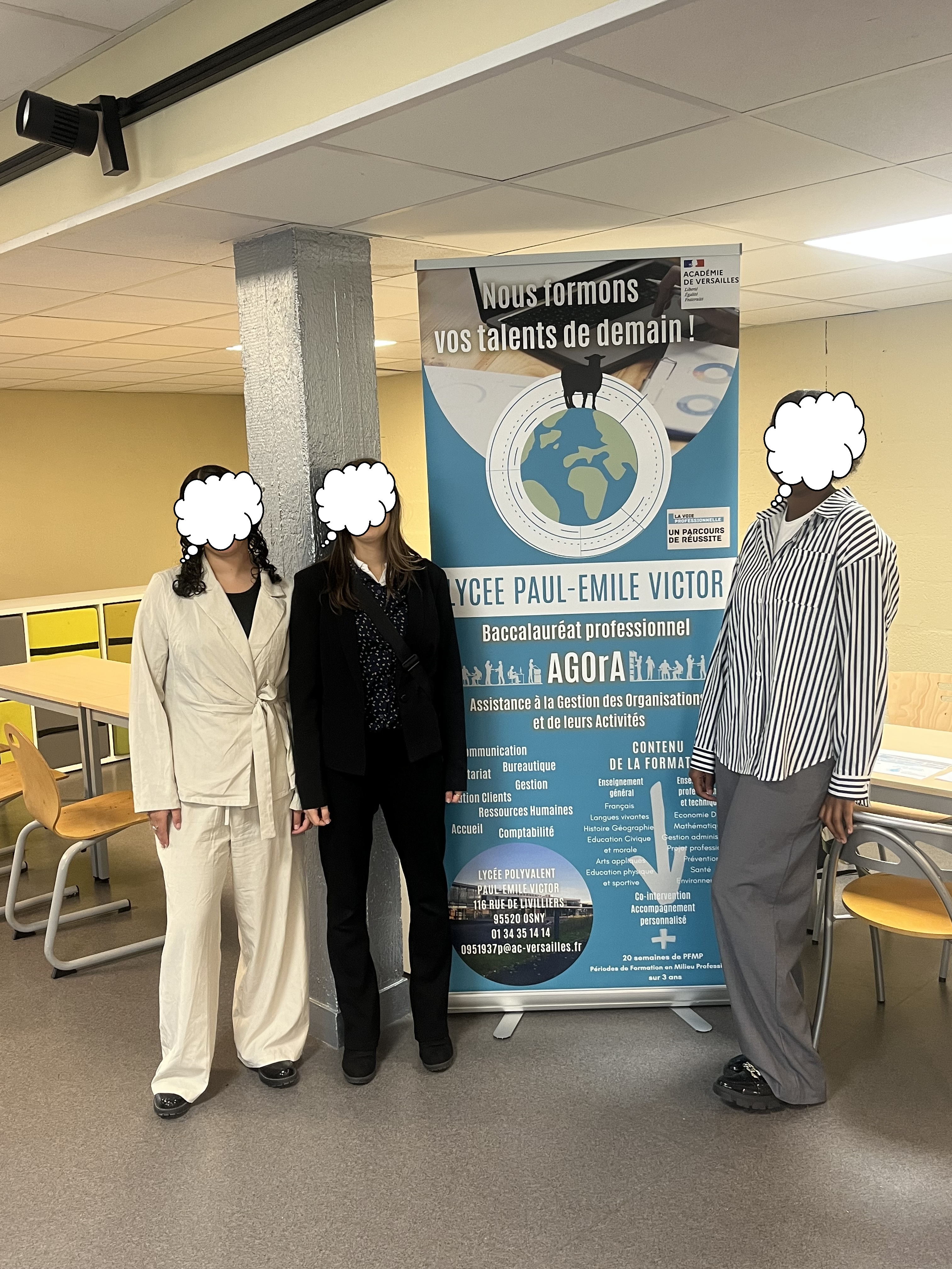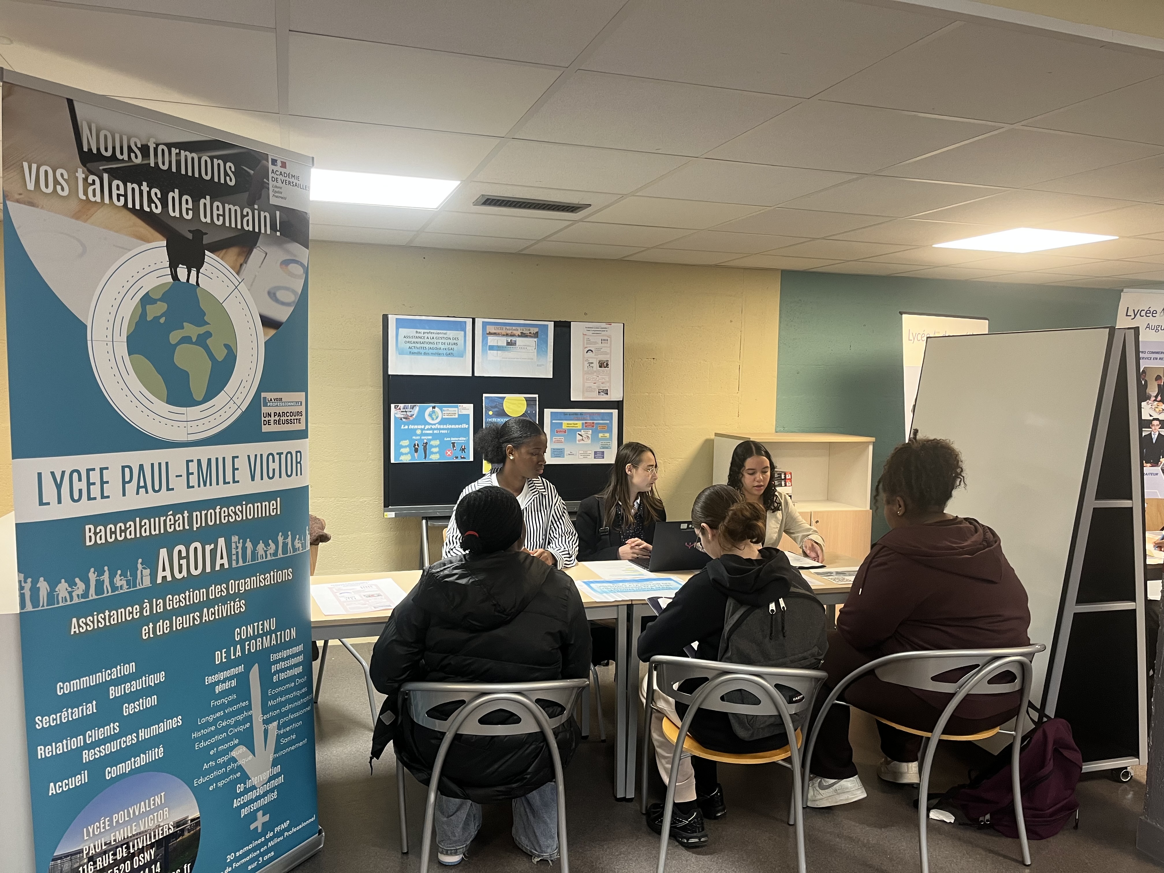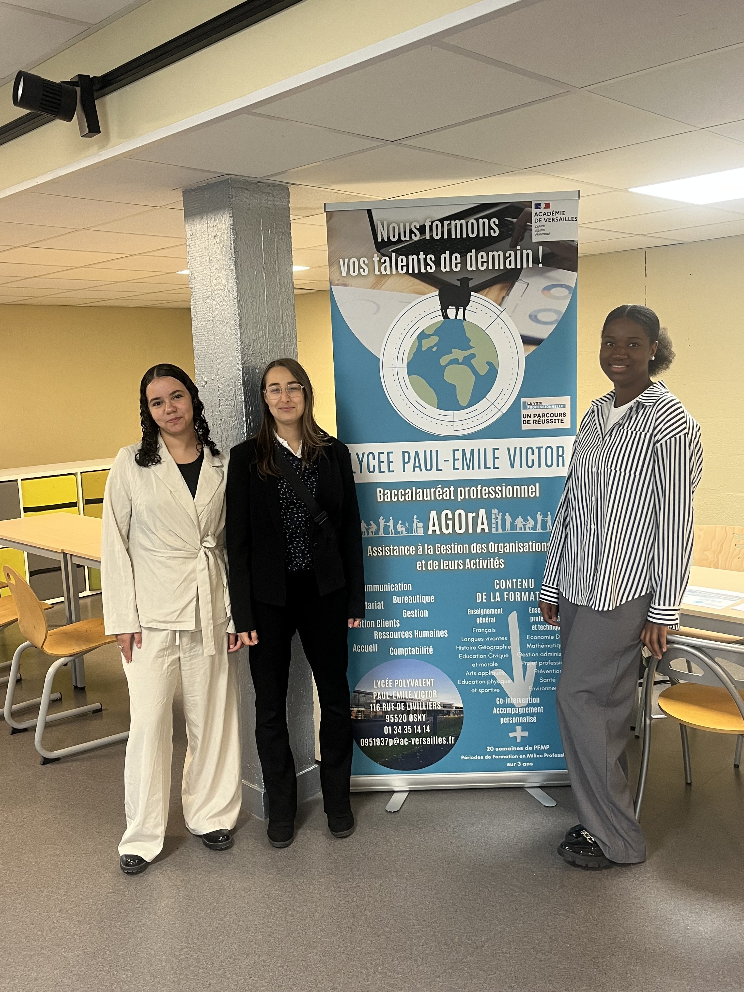 Le Vendredi 10 octobre, l’équipe du lycée Paul Émile Victor Madame Mandret et 3 élèves Océane en Terminale, Nour et Dieneba en Première AGOrA se sont rendues au collège Nicolas Flamel à Pontoise pour participer au forum des métiers.