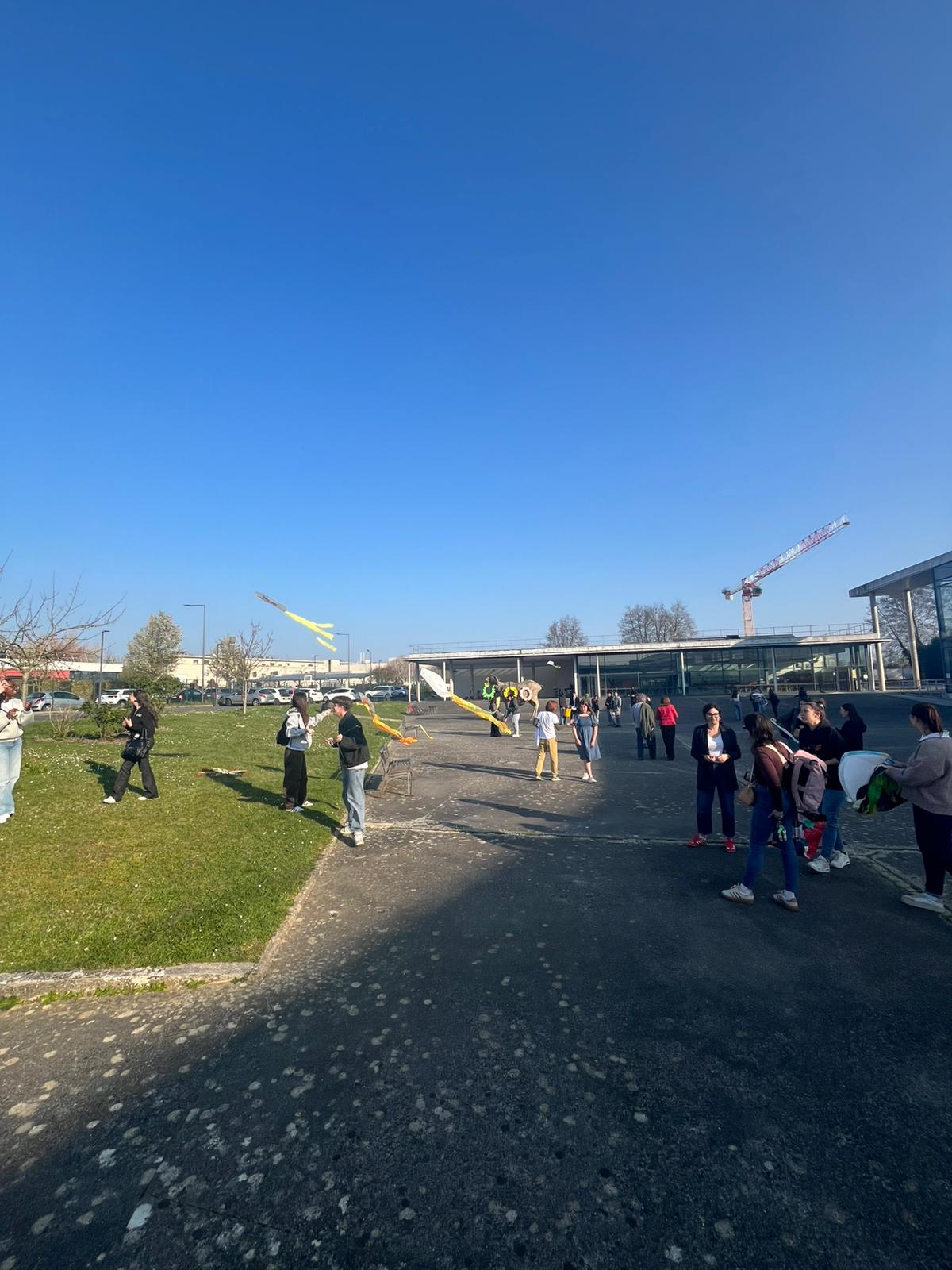 A 16h30, nous avons eu l’occasion de pouvoir faire voler nos cerfs-volants dans la cour avec le magnifique ciel bleu et un vent parfait !