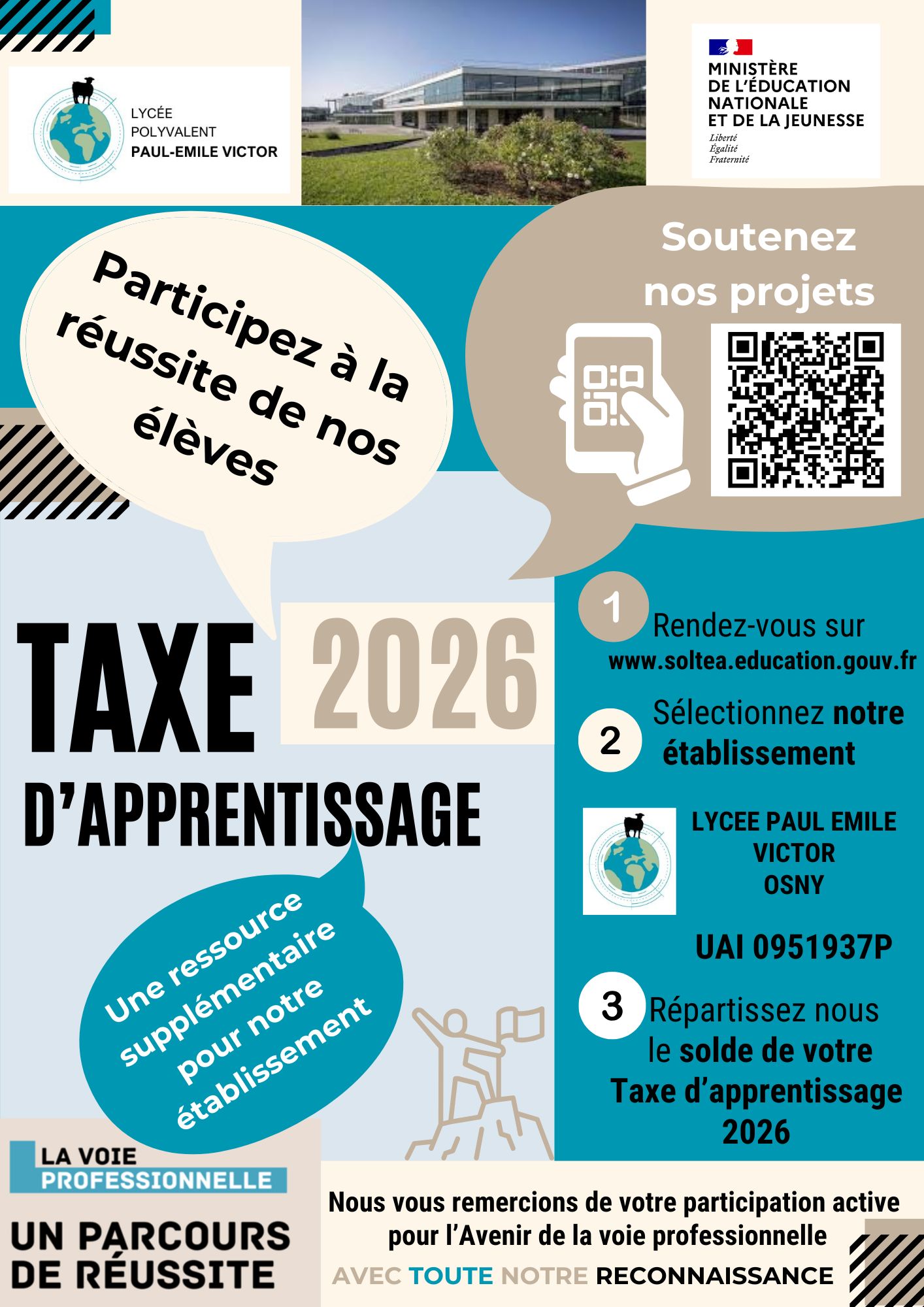Devenez acteur de la réussite de nos élèves en contribuant activement à nos projets ! TAXE D’APPRENTISSAGE 2026 !