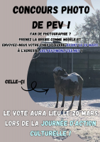 Lors de la Journée d’Action Culturelle du 20 mars 2026, un concours de photos avait été organisé sur le thème de la brebis de la cour du lycée. Cinq photos avaient été envoyées, et ont été exposées dans le hall du lycée toute la journée. Les élèves et personnels du lycée ont ainsi pu voter pour leur préférée.