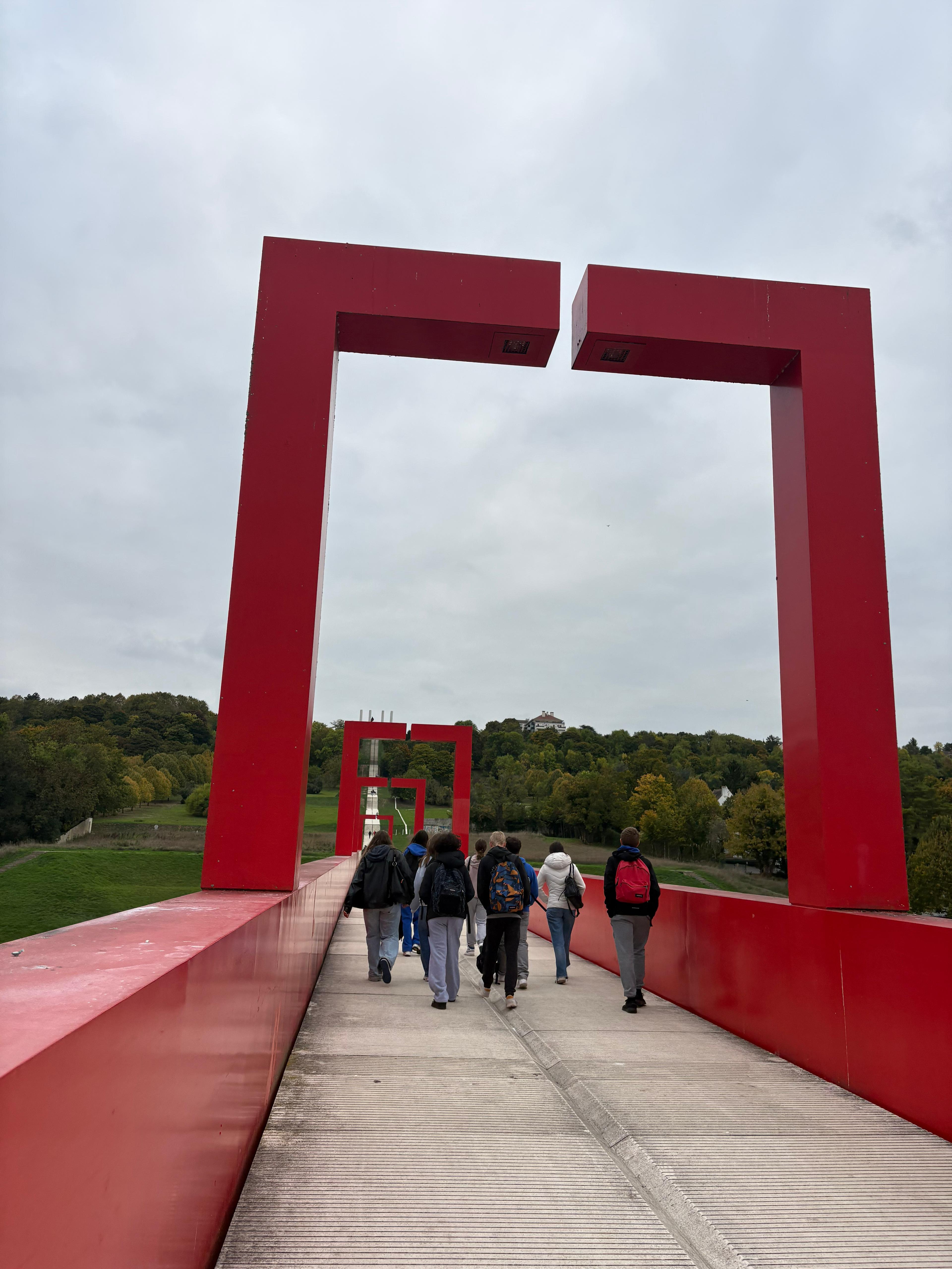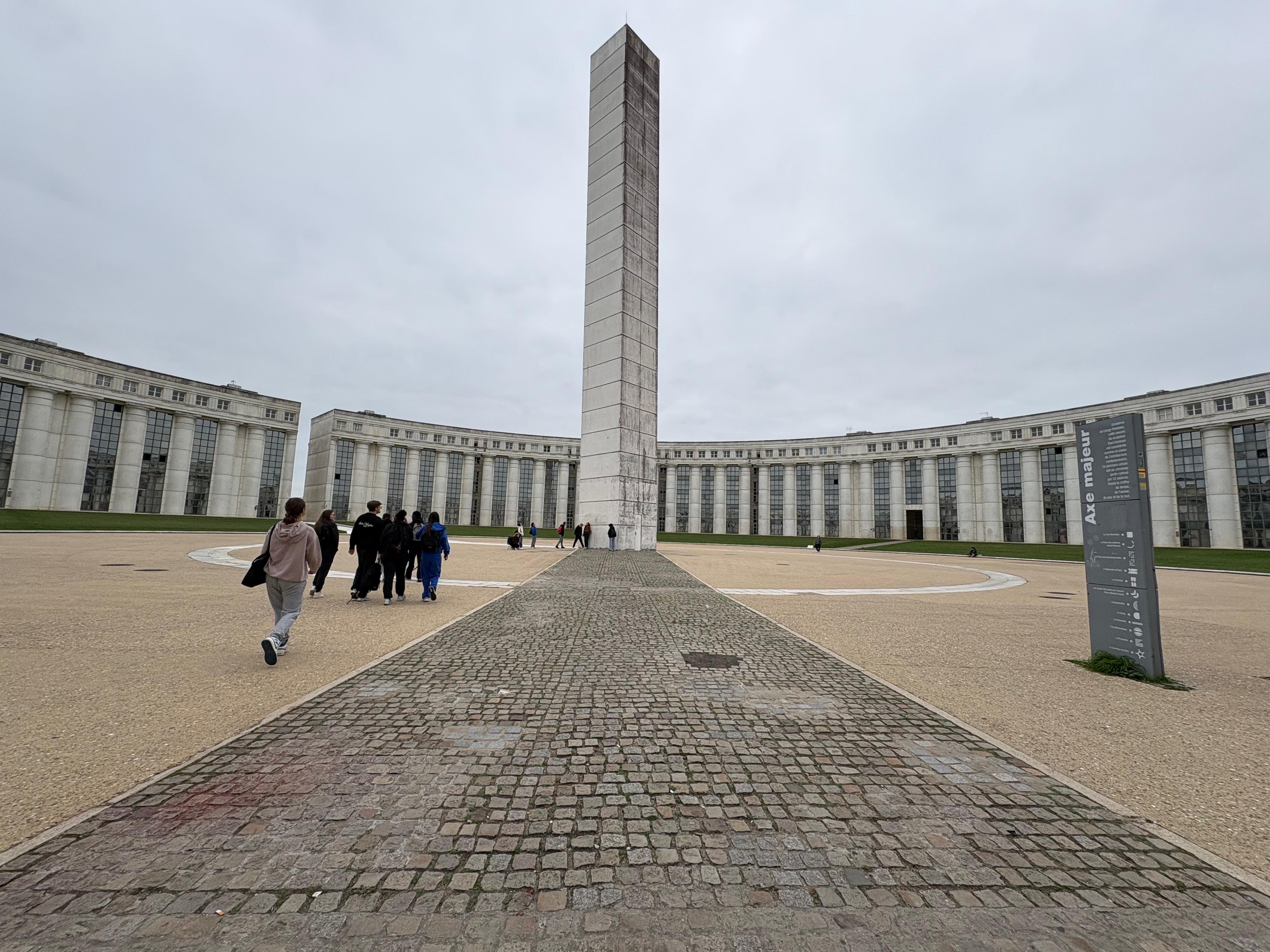 Le mercredi 15 octobre 2025, les 16 élèves membres du projet « Lettres et Sciences Sociales » se sont rendus à Cergy-Pontoise pour leur première sortie de l’année, accompagnés par Madame Le Fèvre et Madame Rios. Dans le cadre de leur programme de renforcement culturel, l’objectif du jour était de s’intéresser à l’architecture et à l’œuvre d’art originale que représente l’Axe Majeur. Pour cela, ils ont pu suivre une visite guidée de cette œuvre à ciel ouvert, imaginée par l’artiste Dani Karavan, entre urbanisme et environnement naturel. Deux élèves participants racontent la visite.